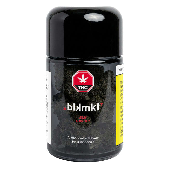 A BLKMKT Exclusive. Bred in-house, BLK Caviar is an anomaly from anything in the lineup. Nicknamed "Thanksgiving Dinner" with a nose reminiscent of turkey stuffing and gravy. This indica-dominant cut produces extremely dark, iced out buds with a noteworthy taste taking this one step further in bag appeal. Always made from small batch whole flower that is grown indoors & hang-dried, hand-trimmed and hand-packaged at facilities in Okanagan, B.C. Available for a limited-time-only.