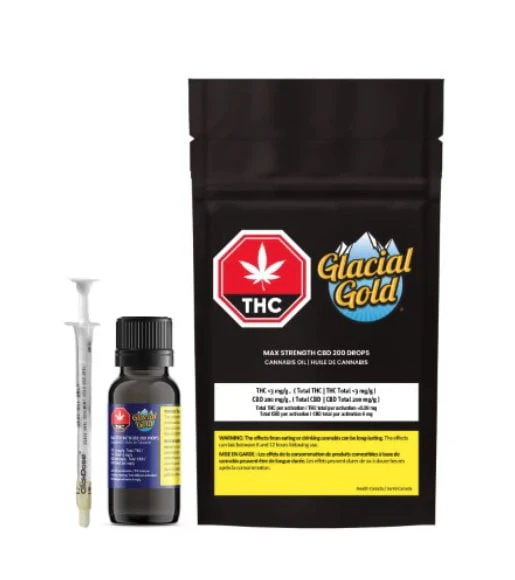Glacial Gold MAX Strength CBD 200 Drops feature broad spectrum CBD distillate and organic MCT oil from coconuts. This 200mg/g CBD formula provides a total of 5700mg of CBD per 30ml bottle. Glacial Gold distillate is processed through a patented closed-loop chilled alcohol extraction process including multi-stage refinement, purification, and distillation.