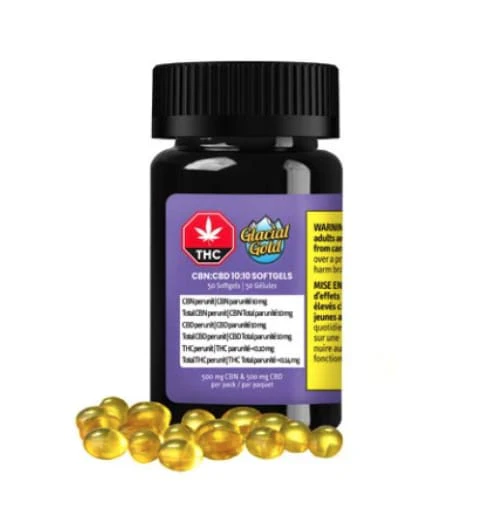 Glacial Gold CBN:CBD 10:10 Softgels deliver a balanced blend of 10mg CBN and 10mg CBD in each premium softgel. Organic MCT oil derived from coconuts is infused with high-purity cannabis extracts, ensuring superior bioavailability that’s consistent and convenient.